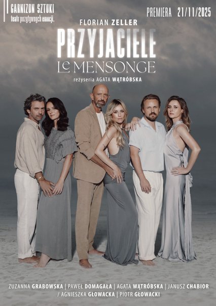 Tej jesieni w naszym GARNIZONIE SZTUKI – teatrze pozytywnych emocji, otworzymy nowy sezon mocnym uderzeniem – premierą spektaklu PRZYJACIELE / Le Mensonge, inteligentnej i przewrotnej komedii autorstwa jednego z najgłośniejszych współczesnych dramaturgów francuskich, Floriana Zellera.